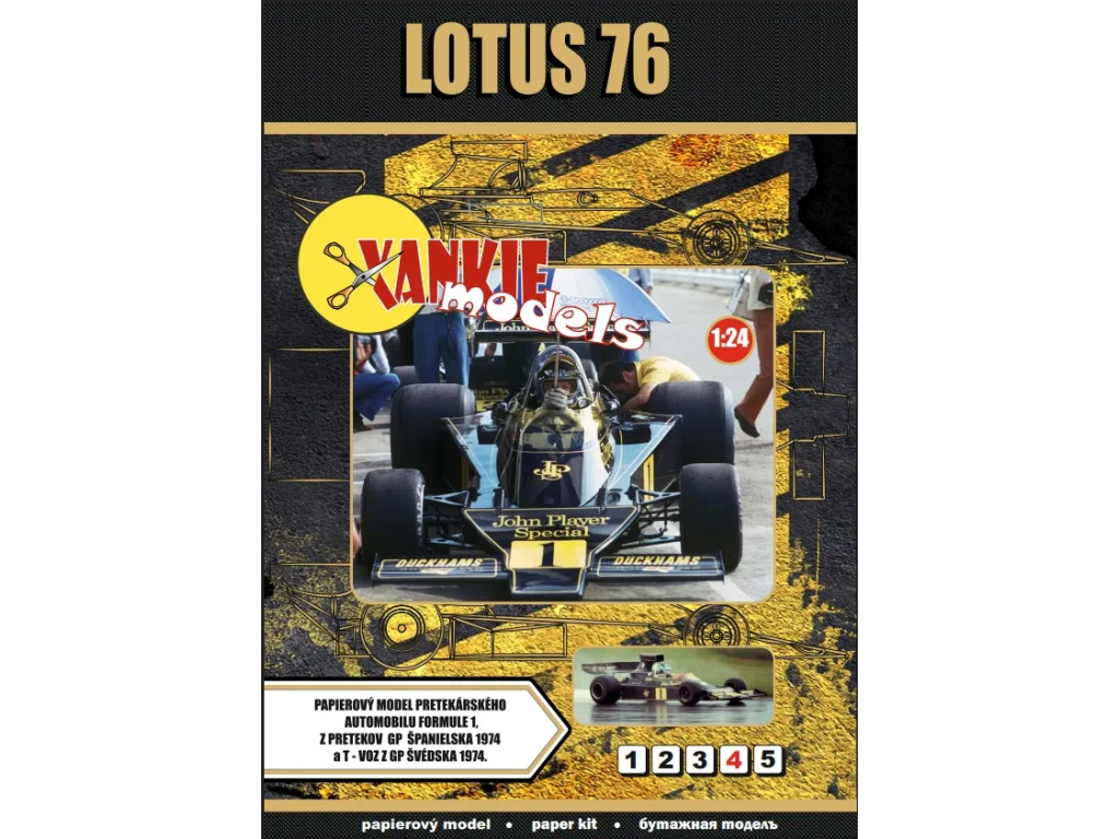 Vystrihovačka od YankieModels Lotus 76GP Sweden 1974 + laser.