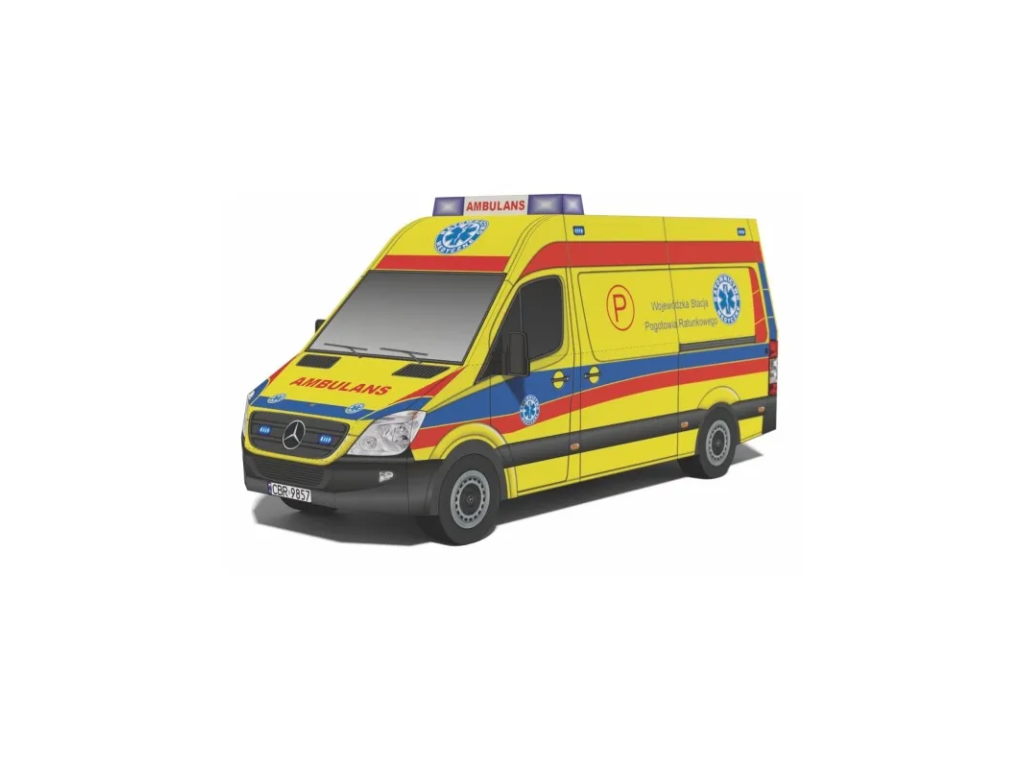 Nepostavený papierový model, stavebnica, vystrihovačka Mercedes Sprinter Sanitka.