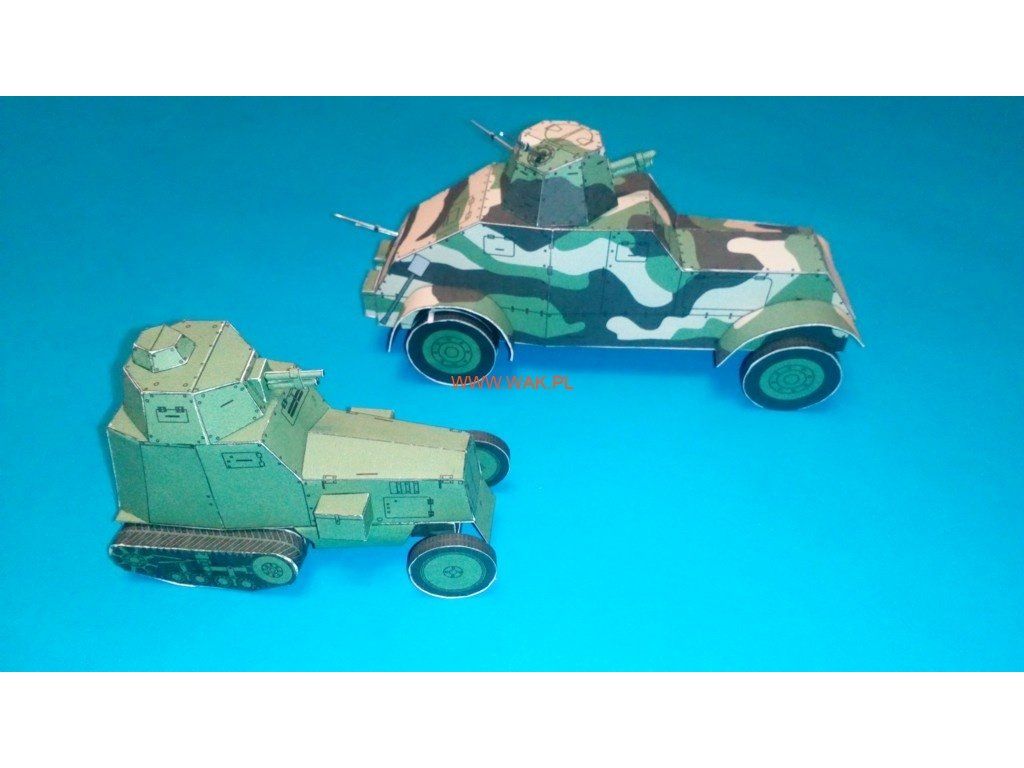 Jednoduché modely dvoch obrnených áut používaných poľskou armádou v roku 1939.
