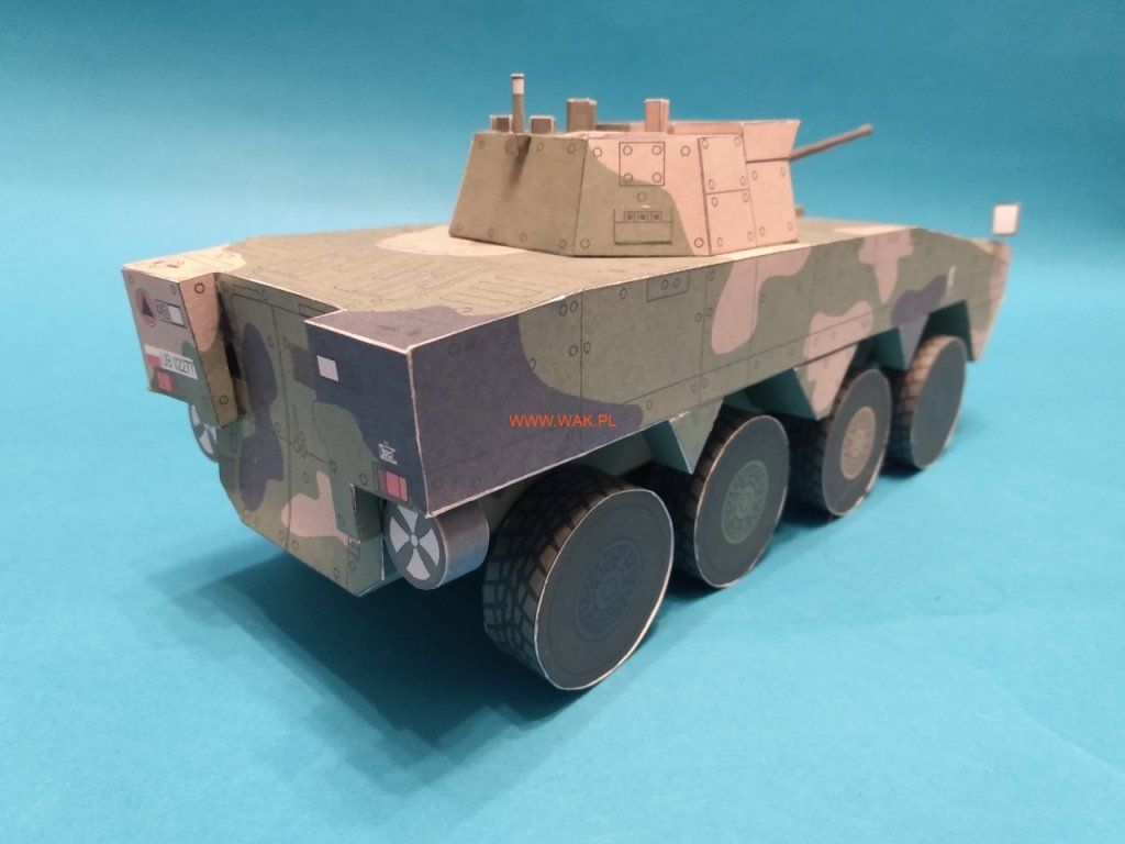 Jednoduchý model súčasného poľského obrneného transportéra Rosomák.