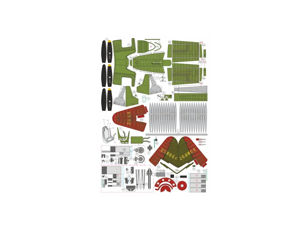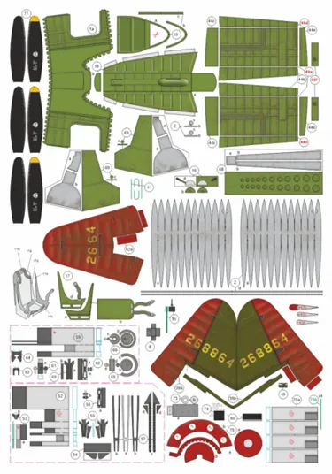 Papierový model má návod v polštine a obsahuje číslované dieli a je tlačený na stranách B4. Model je vytlačený na papieri s gramážou 160g/m2, 0,18mm teda dvojnásobnej hrúbke kancelárskeho papiera (tzv. modelárska štvrťka). Tento papier je štandardne používaný výrobcami modelov, pretože je na prácu najvhodnejší.