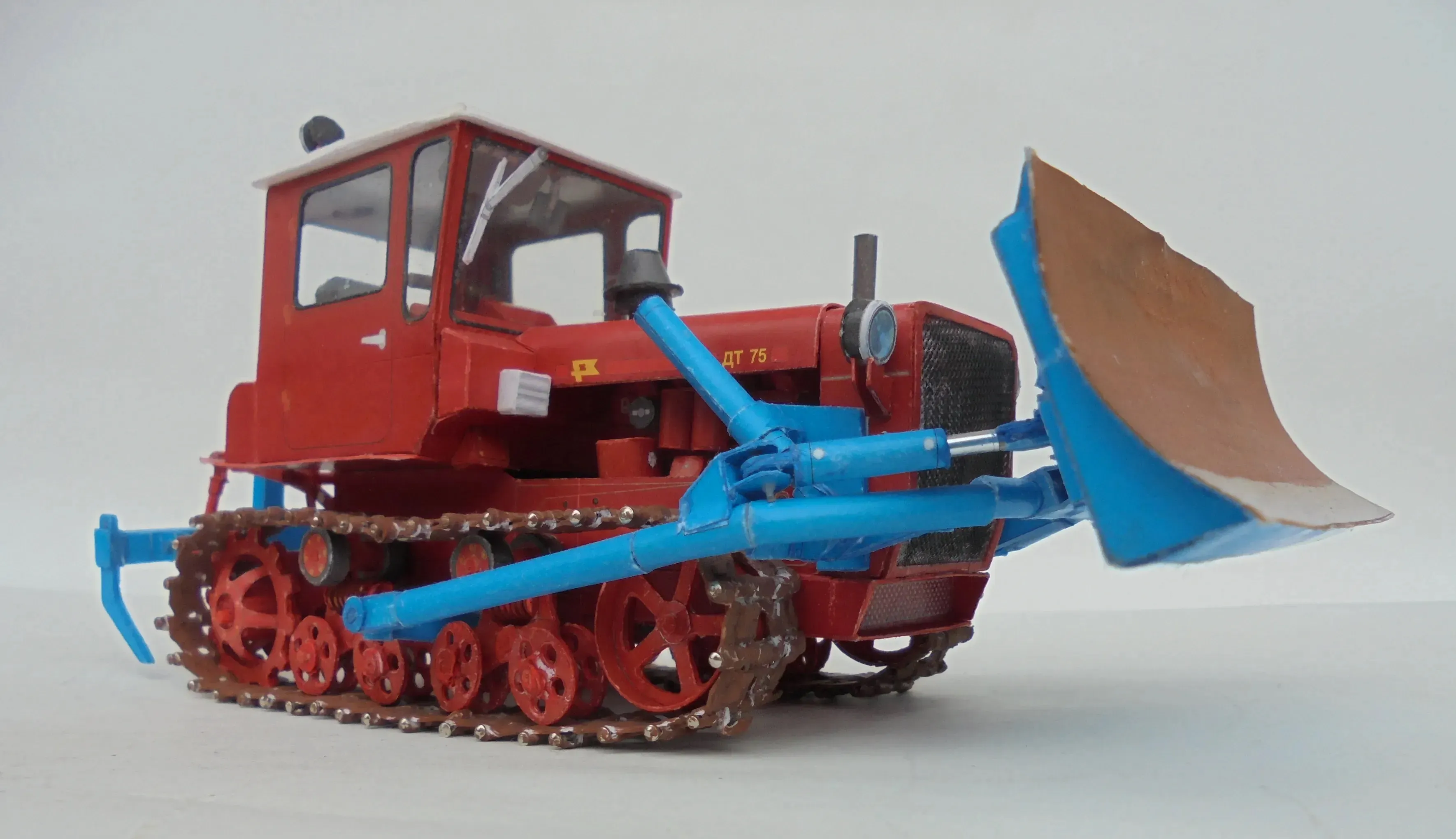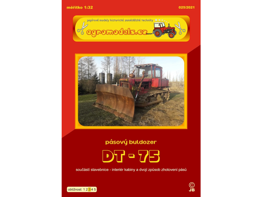 Nepostavený papierový model stavebnica, vystrihovačka Pásový Buldozéz DT-75 od špičkového výrobcu papierových modelov poľnohospodárskej techniky Agromodels.