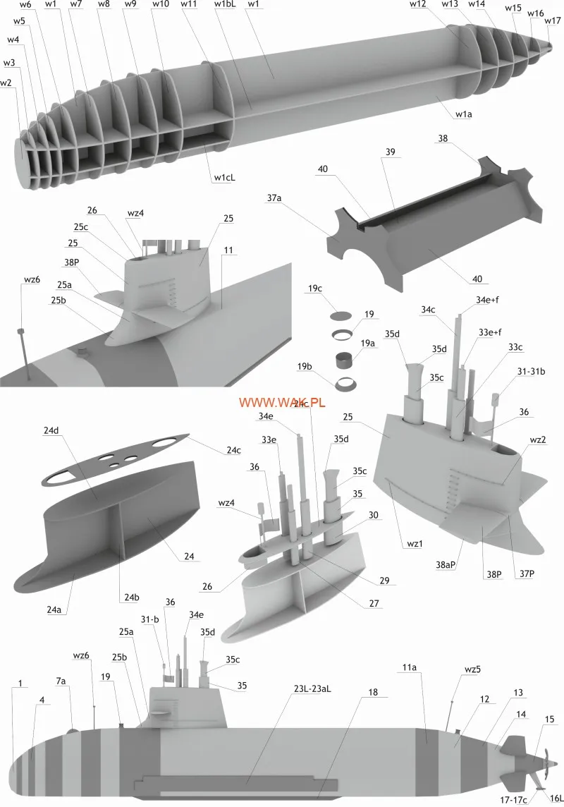 Papierový model má návod v Polštine a obsahuje množstvo farebných, číslovaných dielov a je tlačený ofsetom na 6 stranách A4. Ofset je tlačová technika, pri ktorej sa farba na papier nanáša z tlačového valca, pomocou gumového valca, pretože guma sa lepšie priľne na nerovnosti papiera a dokáže teda vytlačiť aj najjemnejšie detaily. Narozdiel od atramentovej či laserovej tlače sa nerozpíja a neodlupuje pri následnej práci. Model je vytlačený na papieri s gramážou 160g/m2, teda dvojnásobnej hrúbke kancelárskeho papiera (tzv. modelárska štvrťka). Tento papier je štandardne používaný výrobcami modelov, pretože je na prácu najvhodnejší.