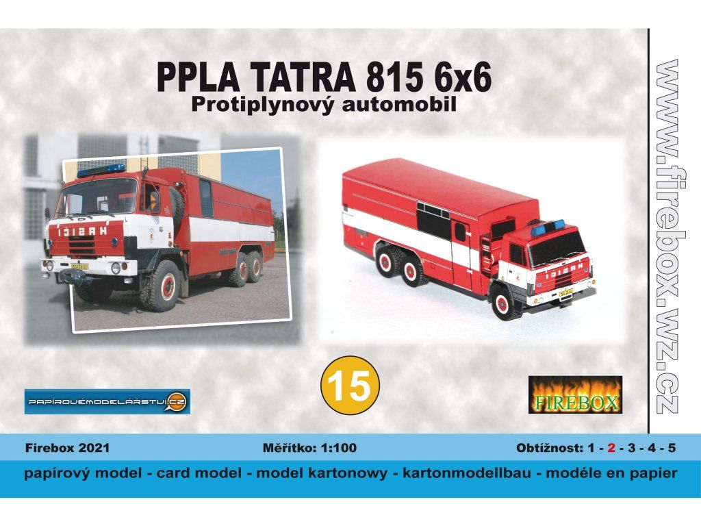 Nepostavený papierový model hasičského protiplynového automobilu PPLA na podvozku TATRA 815 s náhonom 6x6 vo farbách .HSZP Czech Coal Group.