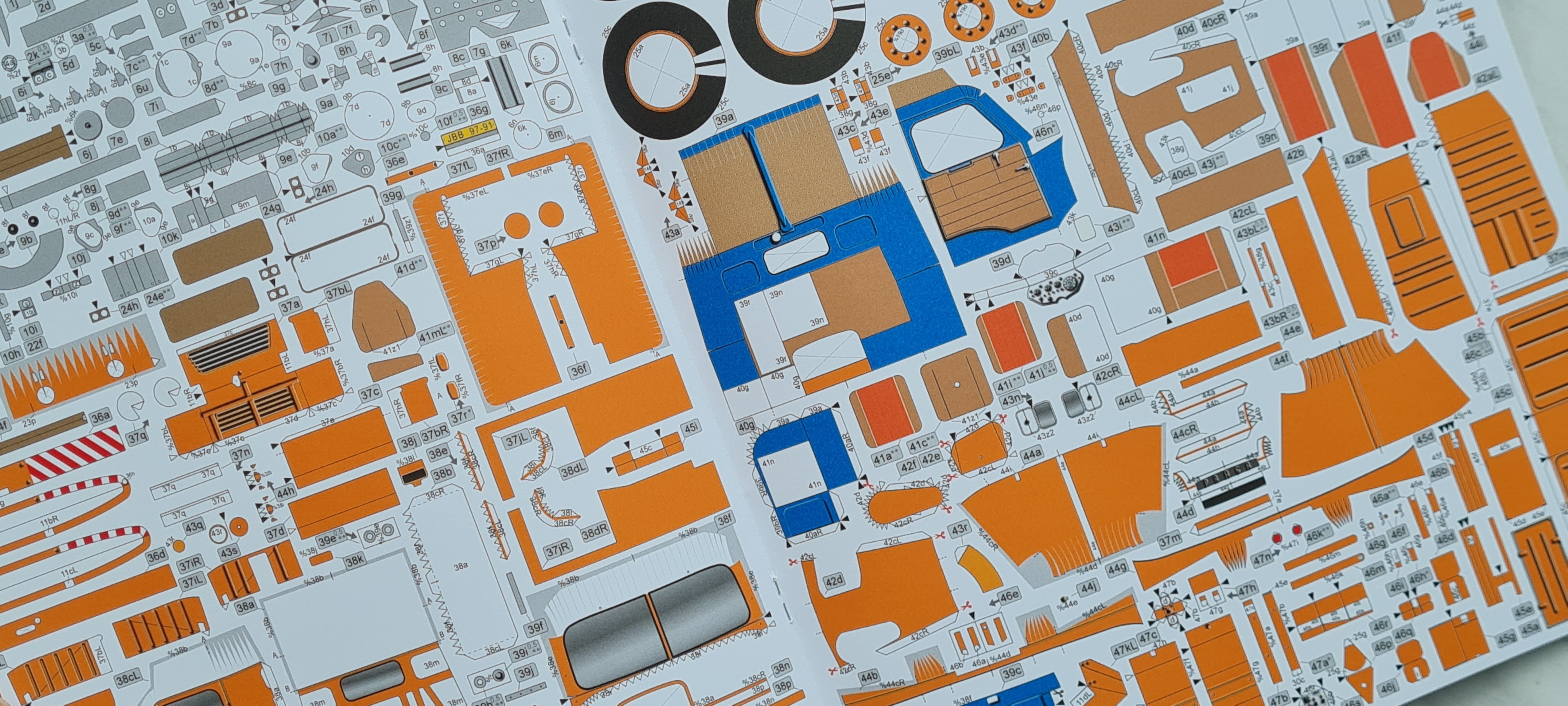 Papierový model je tlačený ofsetom. Ofset je tlačová technika, pri ktorej sa farba na papier nanáša z tlačového valca pomocou gumového valca, pretože guma sa lepšie priľne na nerovnosti papiera a dokáže teda vytlačiť aj najjemnejšie detaily. Narozdiel od atramentovej či laserovej tlače sa nerozpíja a neodlupuje pri následnej práci. Model je vytlačený na papieri s gramážou 160g/m2, teda dvojnásobnej hrúbke kancelárskeho papiera. Tento papier je štandardne používaný výrobcami modelov, pretože je na prácu najvhodnejší. Model je zostavený z cca 1285 dielov rôznych veľkostí. Niektoré diely je nutné podlepiť modelárskym kartónom 0,2 / 0,5 alebo 1mm hrúbky, ktorý sa nachádza tak isto v našej ponuke. Návod obsahuje celkom 32 trojrozmerných návodových kresieb pre čo najjednoduchšiu stavbu a 5 "péroviek" - detailov.