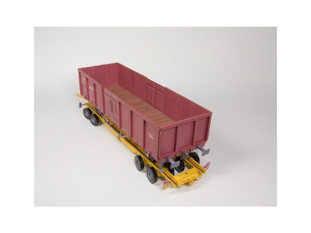 Podvalník je pomerne zložitý, celý rad dielov je nutné presne podlepovať a vzhľadom na dĺžku hlavných nosníkov 320mm aj nadstavovať z dvoch kusov. Avšak pri starostlivej práci budete odmenení funkčným mechanizmom zatáčania náprav, kedy sa všetkých osem vozíkov natáča proti sebe. Vagón je naopak pomerne jednoduchý, opäť však musíte podlepovať a navyše dbať na geometriu veľkých plôch.