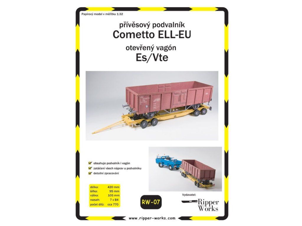 Jeden z papierových modelov od špičkového výrobcu papierových modelov RipperWorks je model dvojmodel – model prívesového podvalníka pre dopravu železničných vozidiel Cometto ELL-EU a model dvojnápravového otvoreného železničného vagóna ČSD radu Es/Vte.