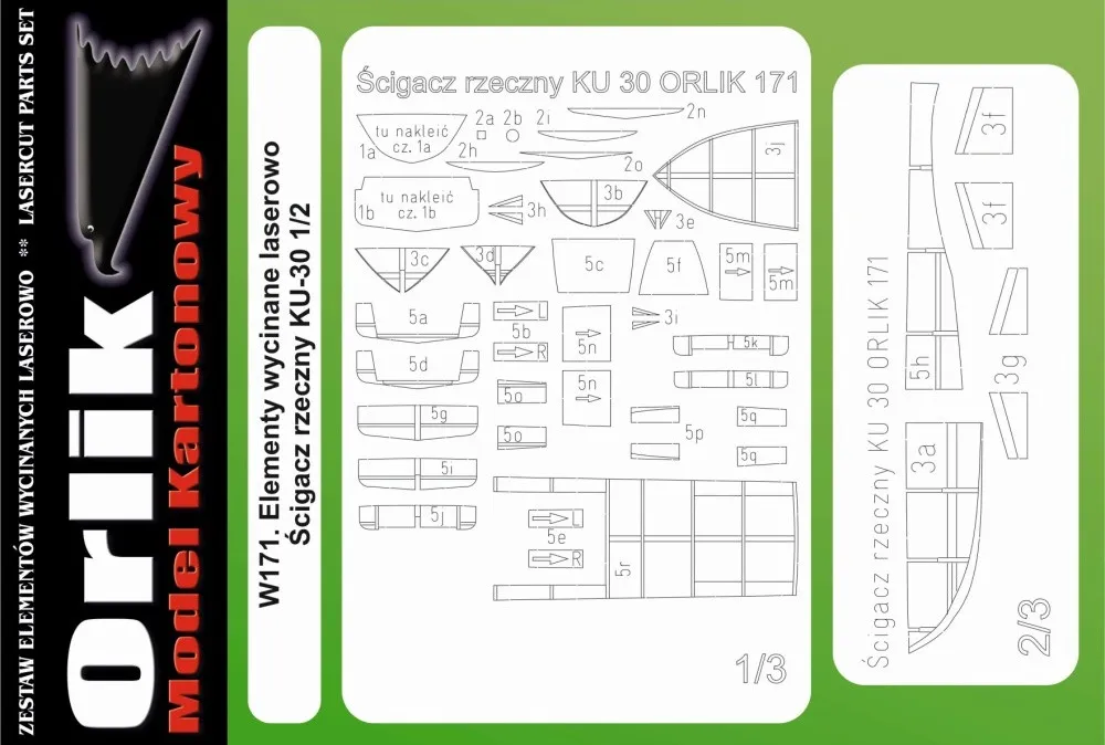 Nepostavená papierová stavebnica Riečny čln KU-30 + Laser, od poľského vydavatelstva Orlík.