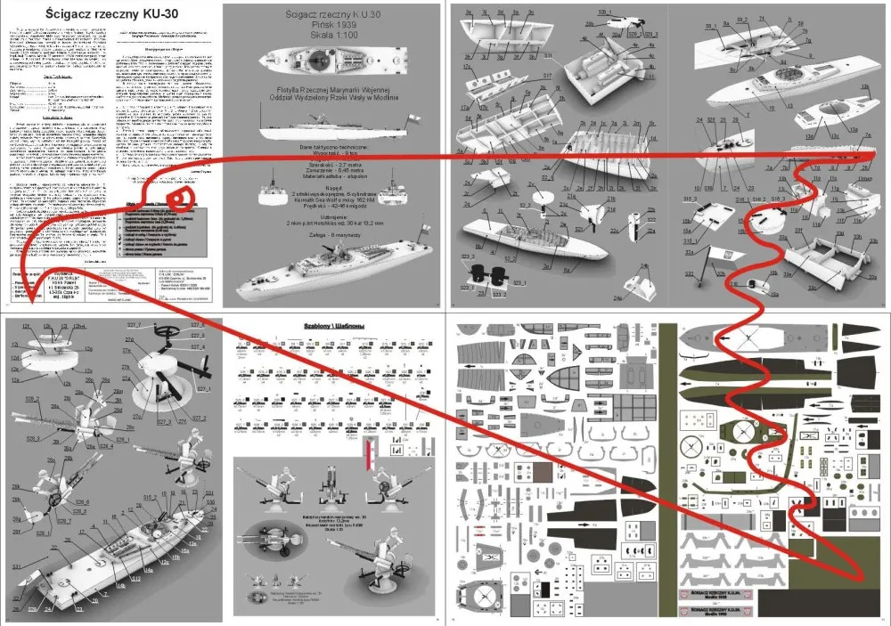 Nepostavená papierová stavebnica Riečny čln KU-30, od poľského vydavatelstva Orlík.