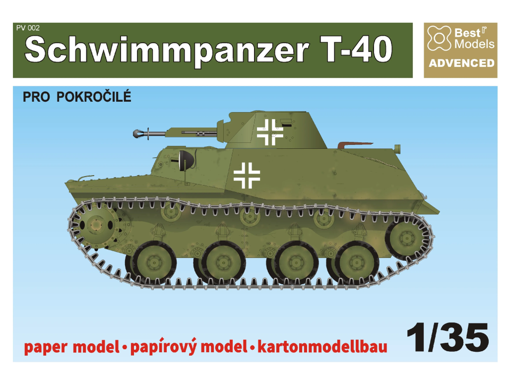 Nepostavený papierový model, stavebnica, vystrihovačka Tank Schwimmpanzer T-40.