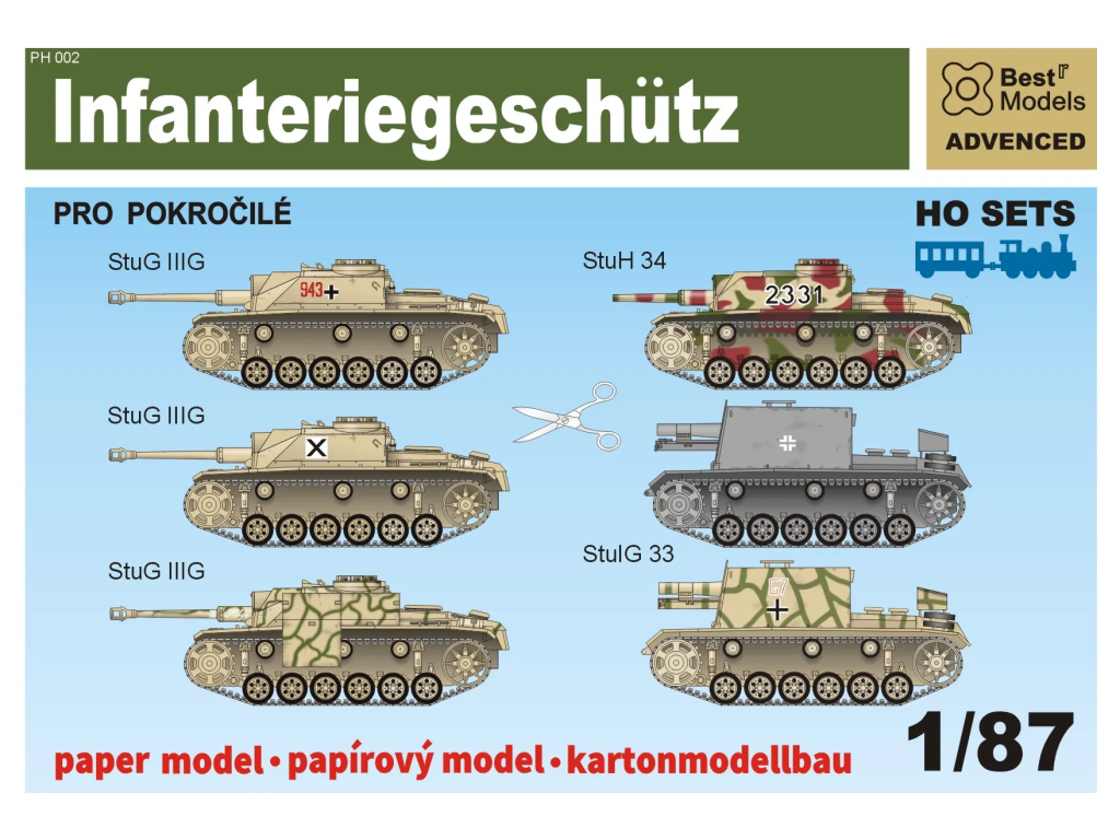 Nepostavený papierový model, stavebnica, vystrihovačka SET H0 - 6x Infanteriegeschutz / Obranná Pechota.
