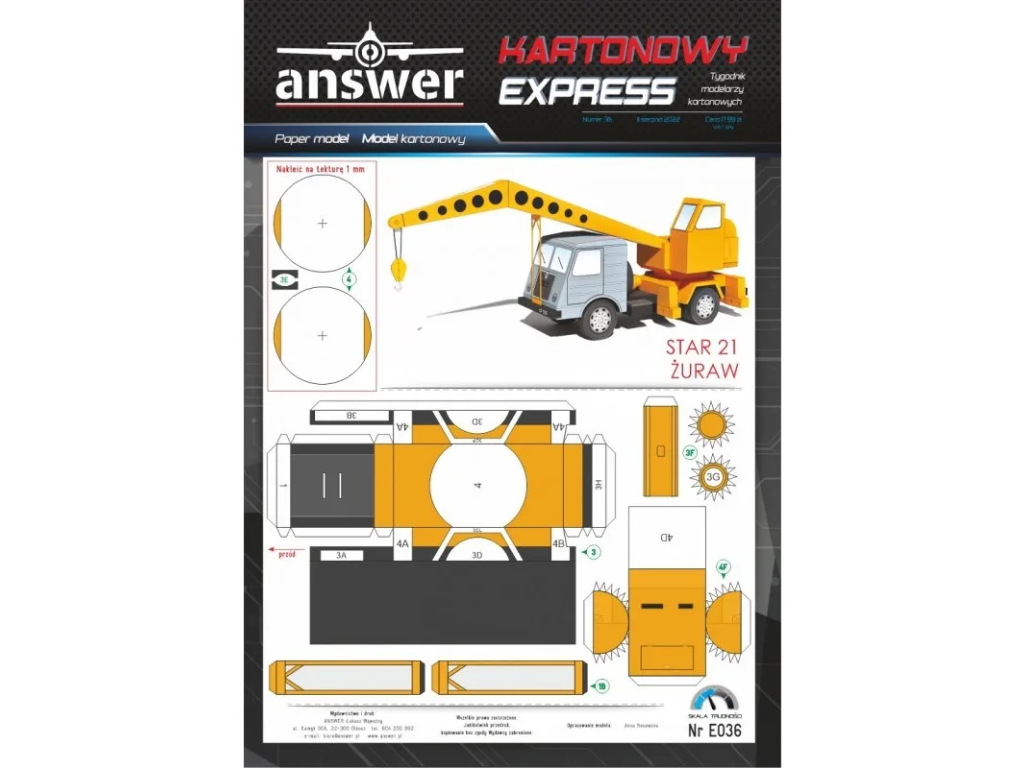 Nepostavený papierový model, stavebnica, vystrihovačka Star 21 Žeriav.