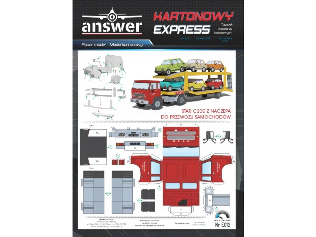 Nepostavený papierový model, stavebnica, vystrihovačka Star C200 na prevoz áut.