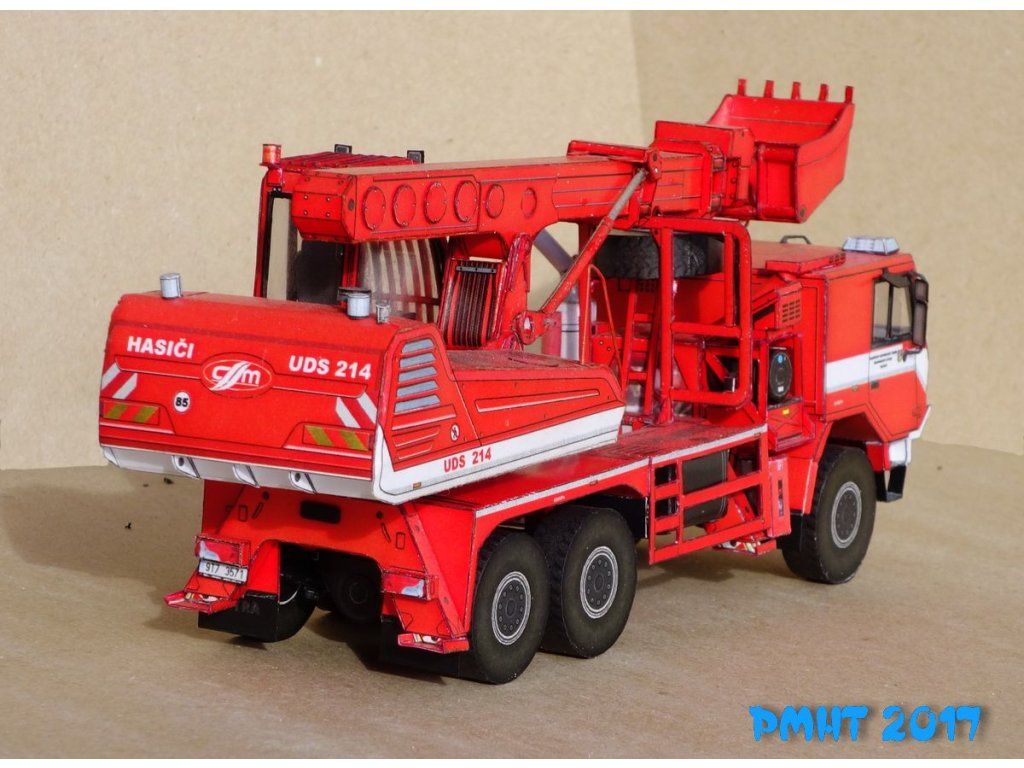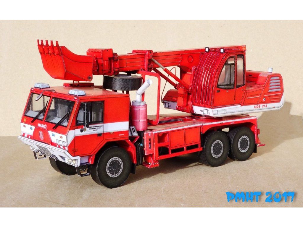 Papierový model automobilového bagra UDS-214. Je to univerzálny dokončovací stroj na automobilovom podvozku Tatra 815-7 6x6.