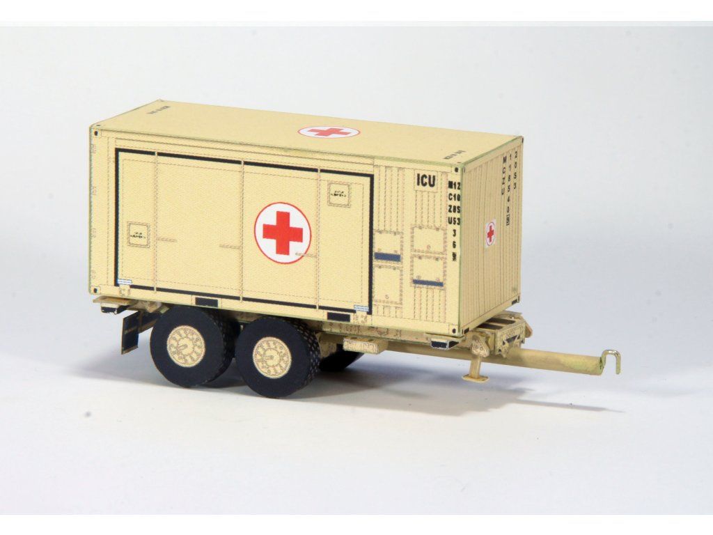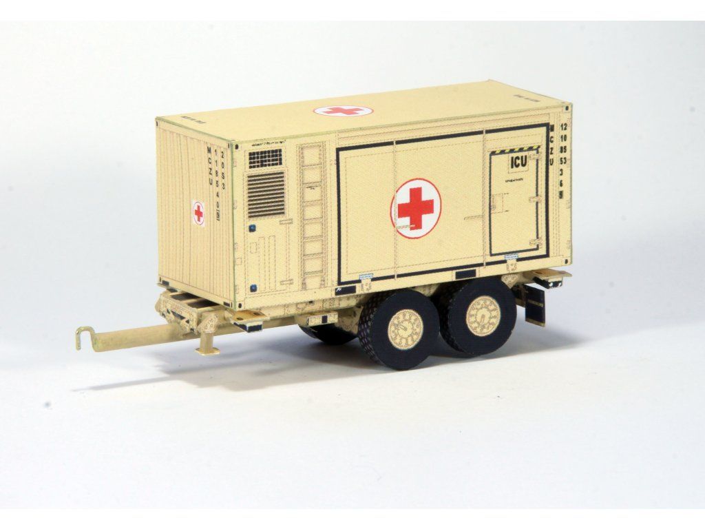 Stavebnica umožňuje stavbu modelu v jednoduchšom prevedení, tj. krabičkovým podvozkom alebo v zložitejšej podobe s plastickými kolesami. Súčasťou modelu sú dva zdravotnícke kontajnery – ICU (Intensive Care Unit – jenotka intenzívnej starostlivosti) a PHARMACY – lekáreň. Kontajner ICU je možné zostaviť v rozloženej polohe. Príves je možné skombinovať s valníkovým automobilom TATRA 815-7 vydaným pod číslom 18.