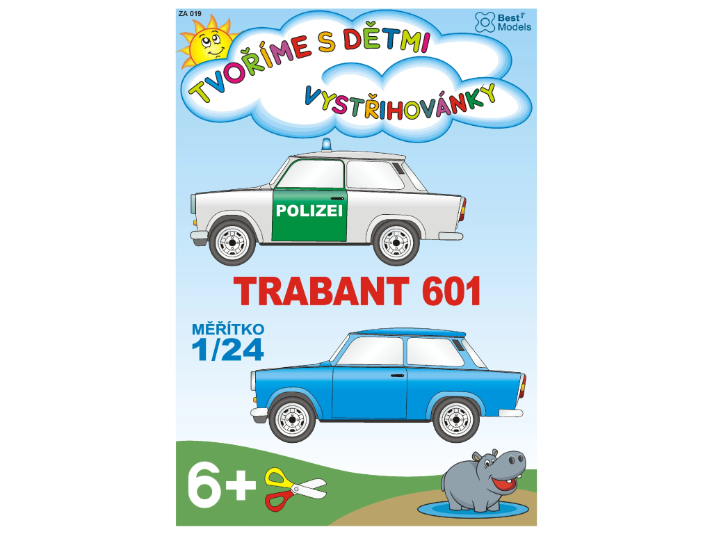 Súčasťou vystrihovačky sú 2 modely Trabant 601, osobný a policajný NDR.