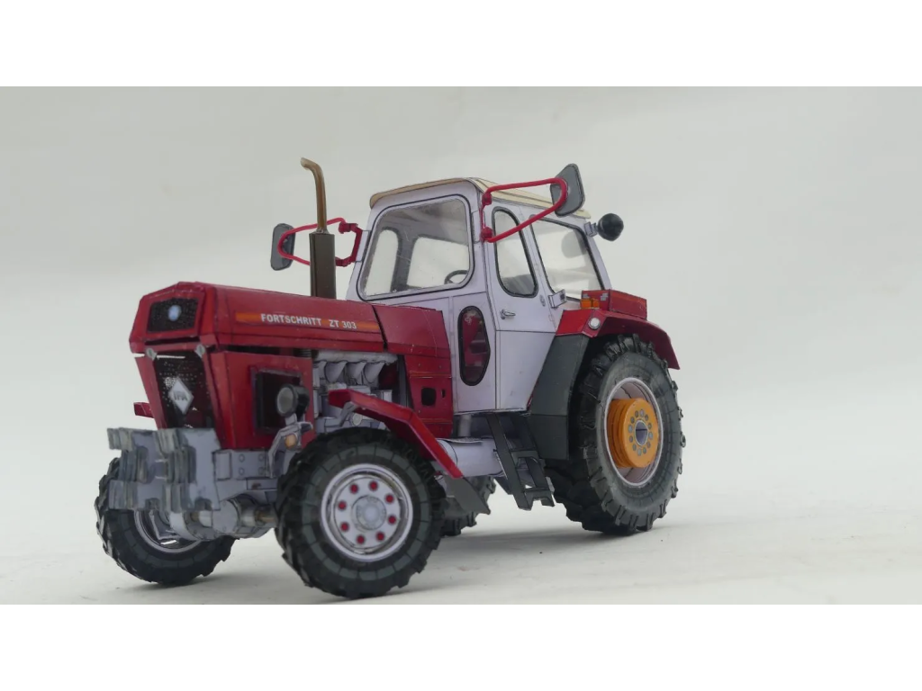 Vystrihovačka traktora Fortschritt ZT 303 - červený od špičkového výrobcu papierových modelov poľnohospodárskej techniky Agromodels (CZ).