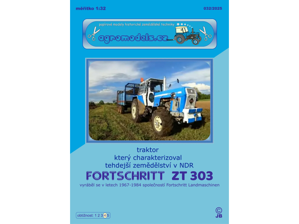 Vystrihovačka traktora Fortschritt ZT 303 - modrý od špičkového výrobcu papierových modelov poľnohospodárskej techniky Agromodels (CZ).