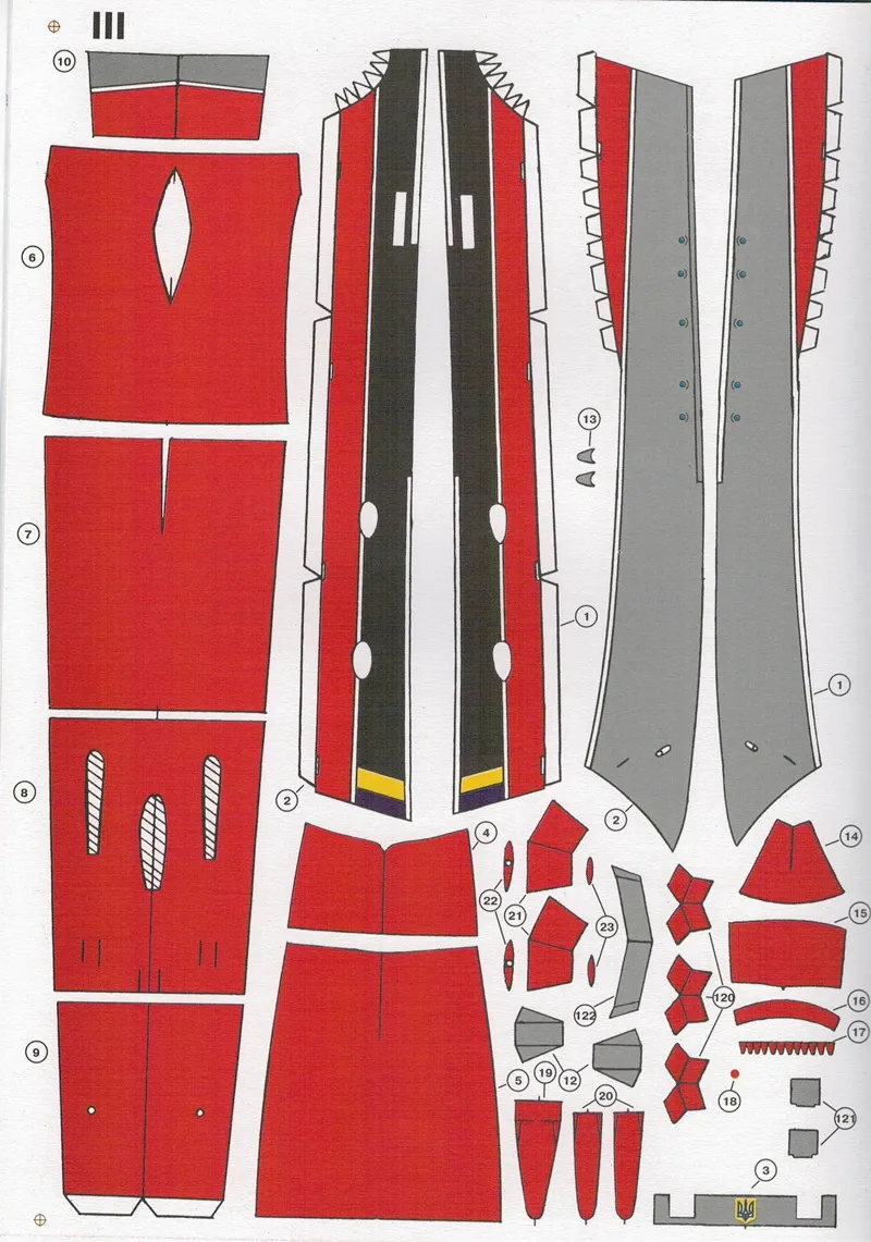 Papierový model má návod v ukrajinčine a obsahuje množstvo farebných, číslovaných dielov a je tlačený ofsetom na 5,5 stranách A4. Ofset je tlačová technika, pri ktorej sa farba na papier nanáša z tlačového valca, pomocou gumového valca, pretože guma sa lepšie priľne na nerovnosti papiera a dokáže teda vytlačiť aj najjemnejšie detaily. Narozdiel od atramentovej či laserovej tlače sa nerozpíja a neodlupuje pri následnej práci. Model je vytlačený na papieri s gramážou 160g/m2, teda dvojnásobnej hrúbke kancelárskeho papiera (tzv. modelárska štvrťka). Tento papier je štandardne používaný výrobcami modelov, pretože je na prácu najvhodnejší.