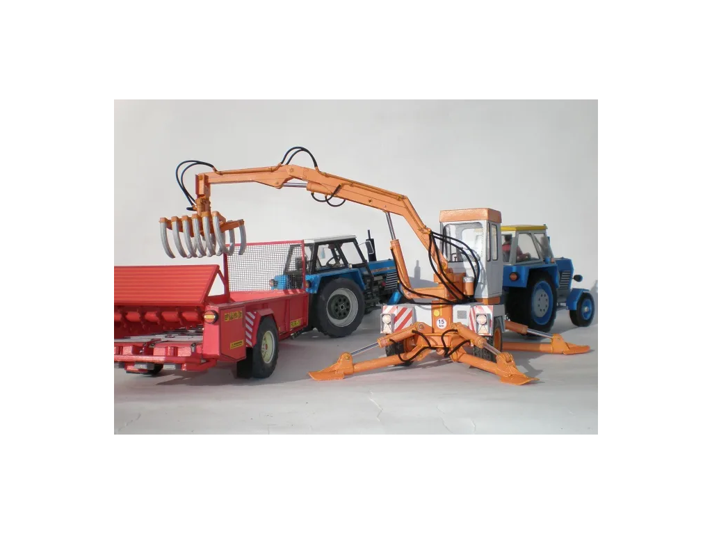 Modelárov, ktorí sú skúsenejší, poteší varianta s interiérom kabíny, dvoma nakladacími mechanizmami - uzatvárateľnou lopatou a nakladacími vidlami. Ďalej detailne prepracovaným podvozkom, pohyblivou a otočnou nadstavbou, sklopnými vzperami. Interiér, môžete podľa vlastnej úvahy vynechať a okná nechať nepriehľadné.
