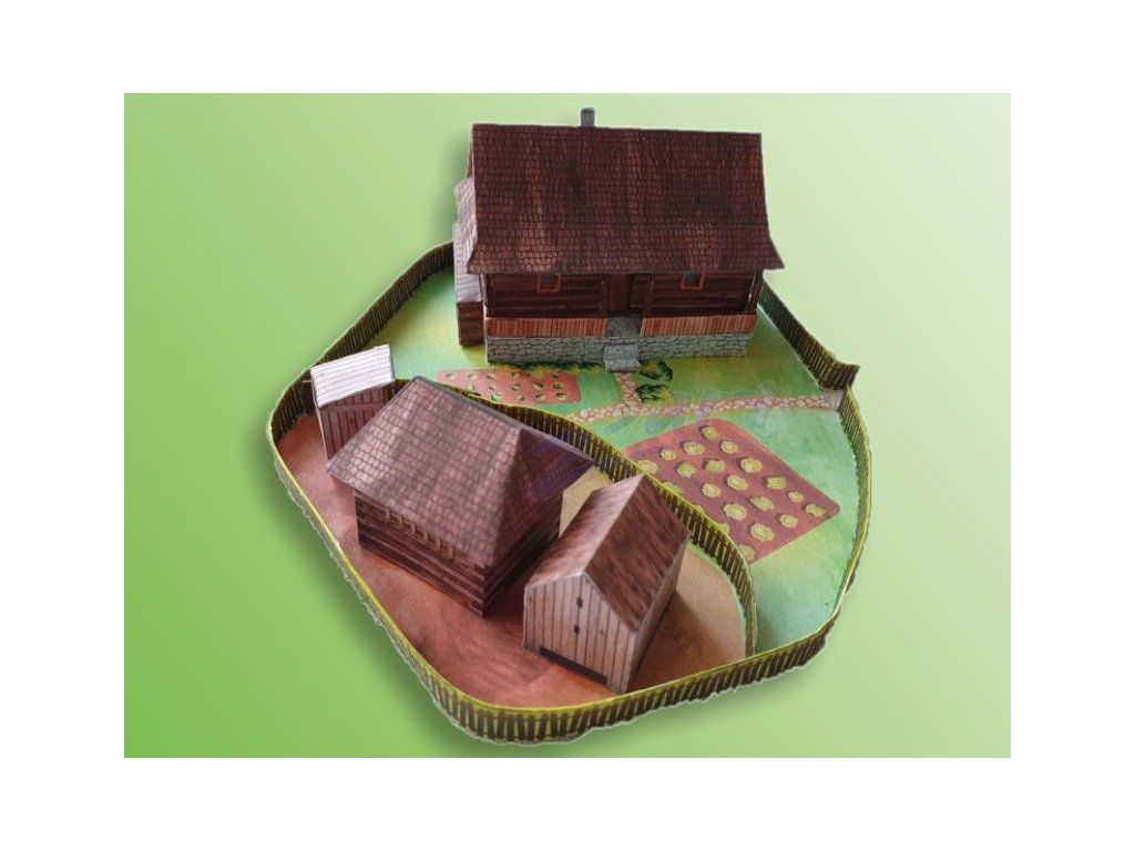 Papierový model - Valašská drevenica so zázemím 2v1
