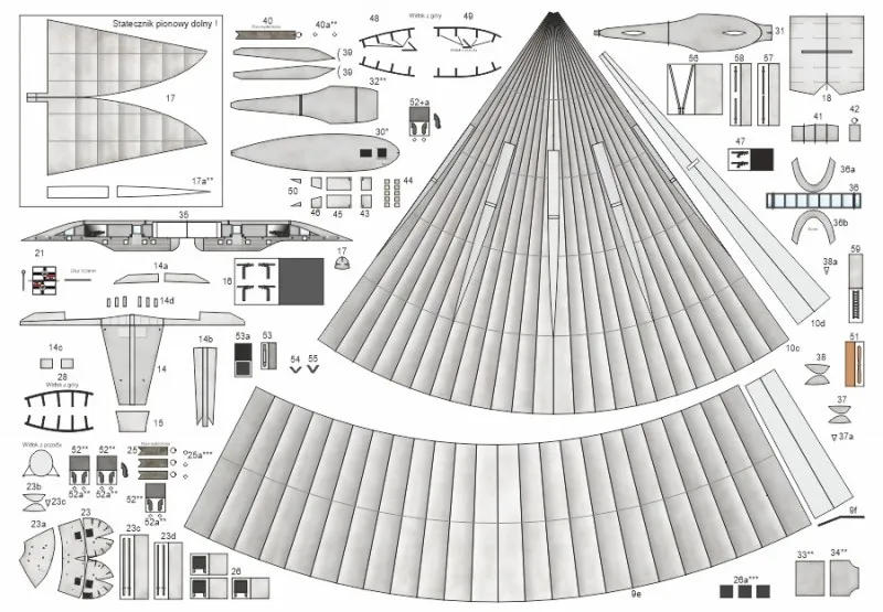 Papierový model má návod v Polštine a obsahuje veľa farebných, číslovaných dielov a je tlačený ofsetom na stranách A3. Ofset je tlačová technika, pri ktorej sa farba na papier nanáša z tlačového valca, pomocou gumového valca, pretože guma sa lepšie priľne na nerovnosti papiera a dokáže teda vytlačiť aj najjemnejšie detaily. Narozdiel od atramentovej či laserovej tlače sa nerozpíja a neodlupuje pri následnej práci. Model je vytlačený na papieri s gramážou 160g/m2, teda dvojnásobnej hrúbke kancelárskeho papiera (tzv. modelárska štvrťka). Tento papier je štandardne používaný výrobcami modelov, pretože je na prácu najvhodnejší.