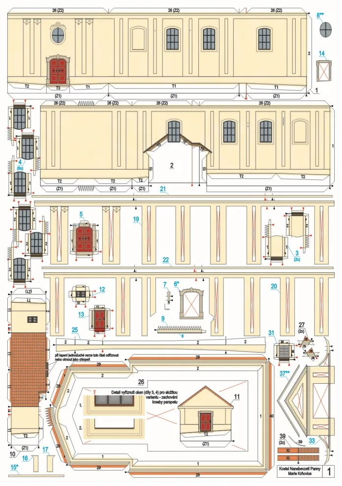 Papierová stavebnica Kostol Nanebovzatia Panny Márie Krňovice.