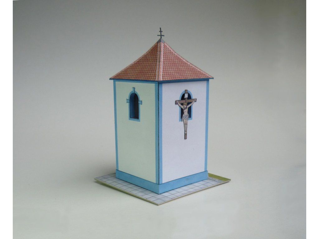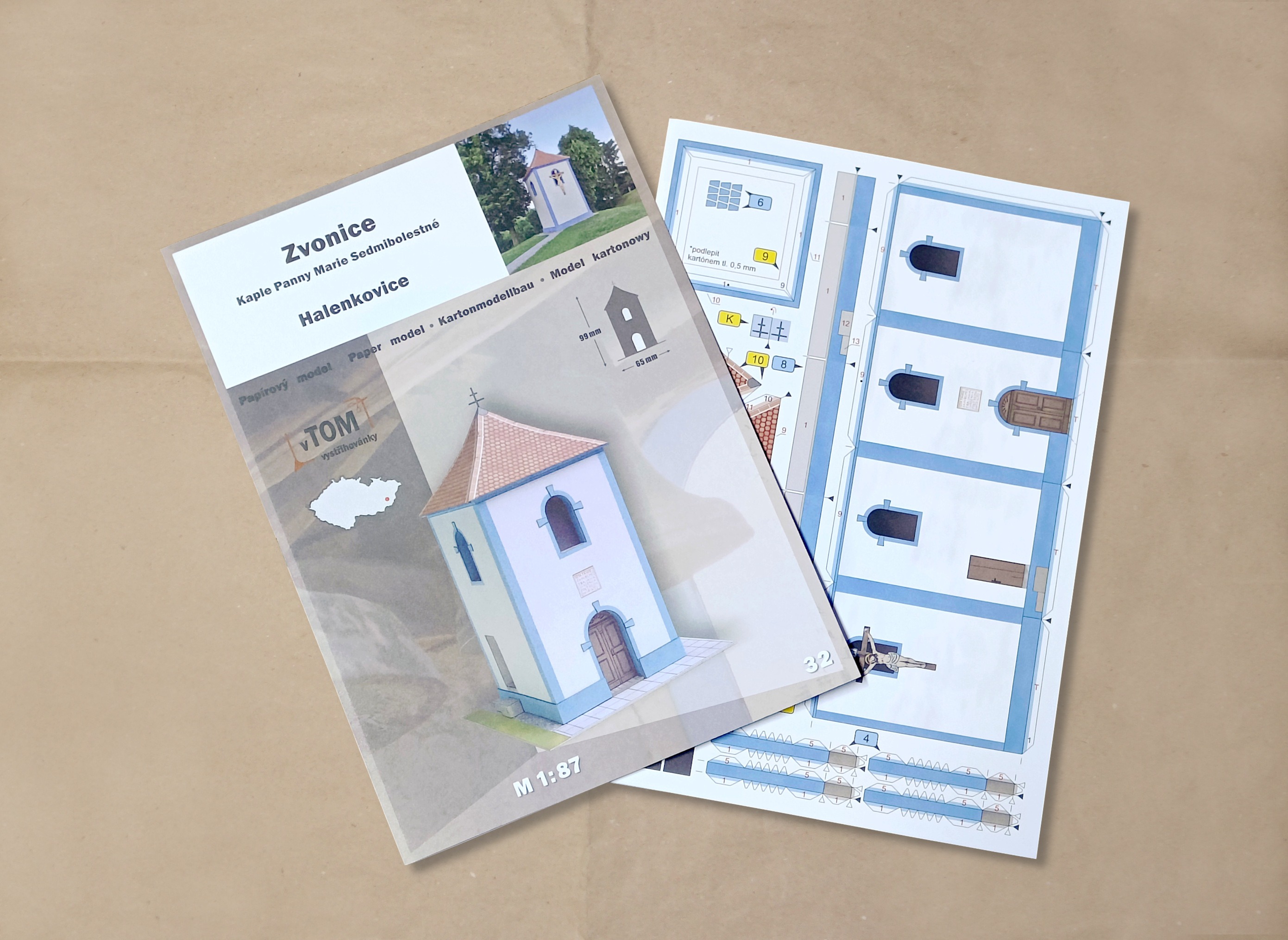Nepostavený papierový model, stavebnica, vystrihovačka Zvonica - kaplnka Panny Márie Sedembolestnej z obce Halenkovice v Zlínskom kraji.