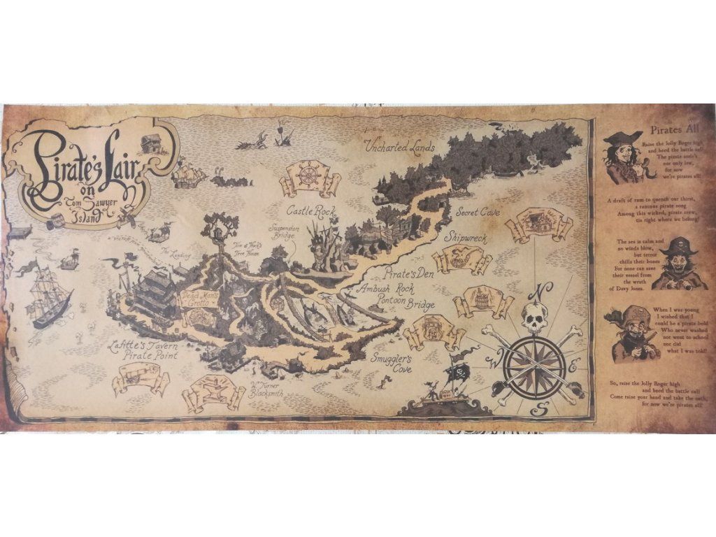 Každý kto v mladosti čítal uchvacujúce dobrodružné príbehy o pirátoch sa určite poteší plagátu Ostrov pirátov Toma Sawiera