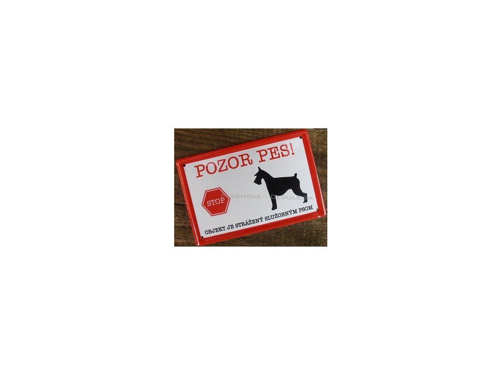 Plechová ceduľa s prelisom dekorovaná sublimáciou. Zobrazujúca kresbu psa a nápis Pozor Pes! s červeným okrajom. Odolná voči poveternostným podmienkam, vhodná pre použitie do exterieru aj interieru.