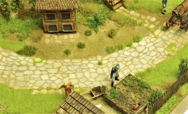 Ide o stvárnenie plochých kameňov, ktoré sa používajú na dláždenie chodníkov a ciest. Tento doplnok je gravírovaný do kartónu s hrúbkou 1 mm. Môže sa použiť vcelku alebo len čiastočne – podľa potreby diorámy alebo modelovej scény.