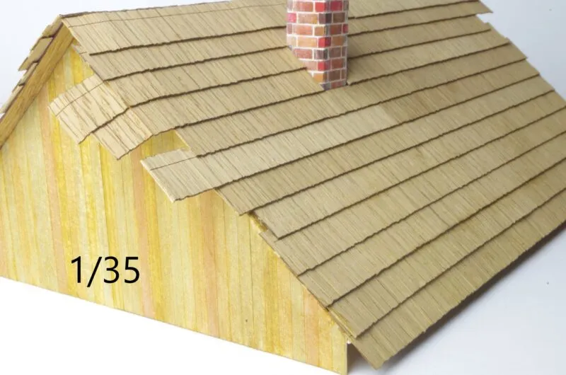 1:35: pokrytie cca 120 × 240 mm — veľkosť 1 šindľa: 10,2 × 4 mm